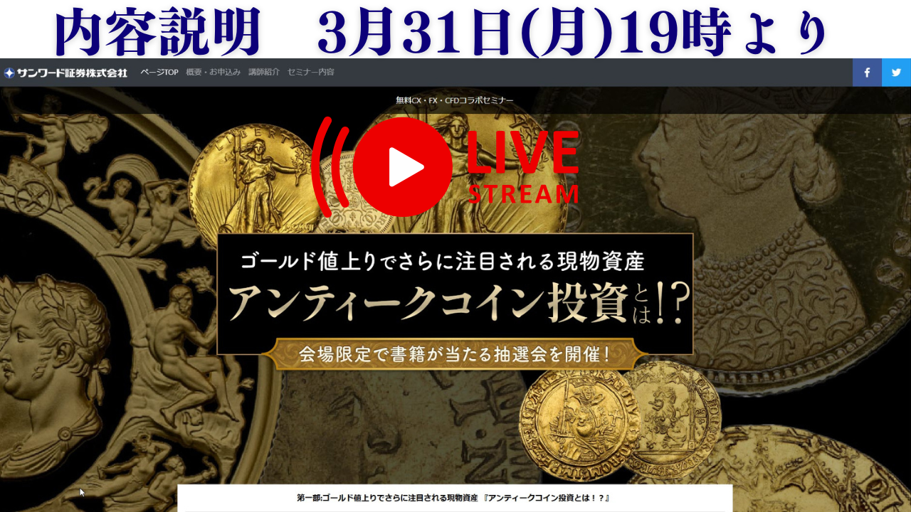 事前説明ライブです。セミナーは4/19土曜日開催です。