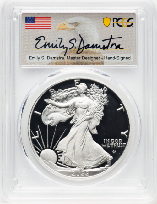 【エミリー・S・ダムストラ サイン入り】アドバンスド・リリース アメリカ 1ドル タイプ2 シルバーイーグル銀貨 2022-S年 PCGS PR70-DCAM