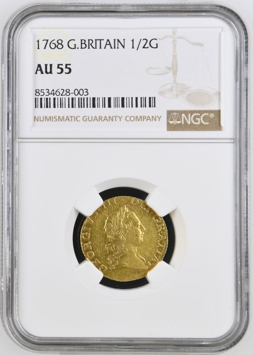 【レア度2-R2】グレートブリテン 1784年 ジョージ3世 1/2ギニー金貨 NGC-AU55