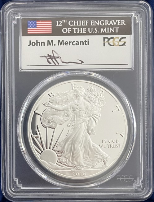 【ジョン・マーカンティ サイン入り】アメリカ 1ドル シルバーイーグル銀貨 2016-W年 PCGS-PR70 DCAM ファーストデイ・オブ・イシュー 81955565