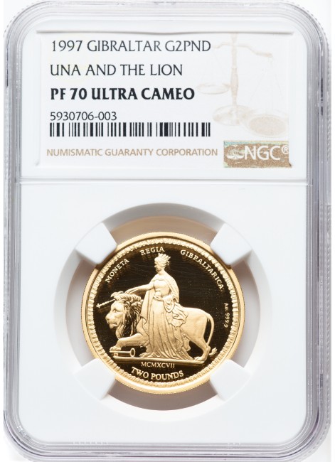 イギリス領ジブラルタル 1989年 ウナとライオン 2ポンド(2ソブリン)金貨 NGC-PF70 UCAM
